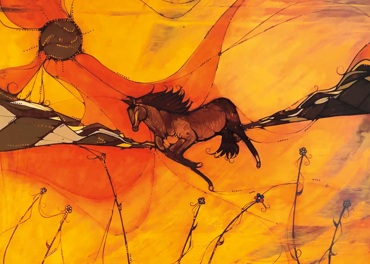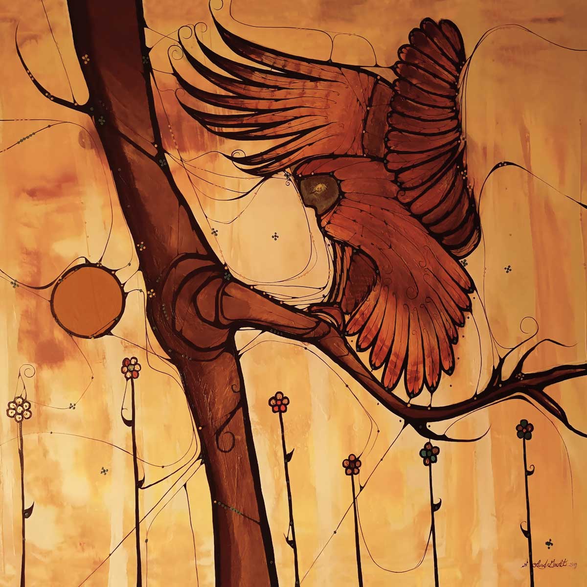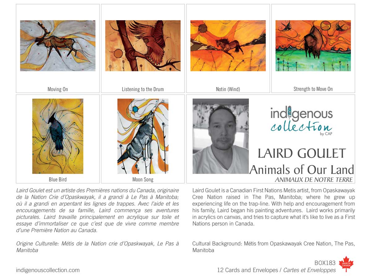 Laird Goulet is a Canadian First Nations Metis artist, from Opaskawayak Cree Nation raised in The Pas, Manitoba; where he grew up experiencing life on the trap-line. With help and encouragement from his family, Laird began his painting adventures. Laird works primarily in acrylics on canvas, and tries to capture what it’s like to live as a First Nations person in Canada. From his early childhood to the present, Laird has re-imagined and chose the healing path that has led to an appreciation of who he is and what he has experienced, with a focus on the human ties to the land. Laird hopes to bring a visualization of that journey too you the viewer.