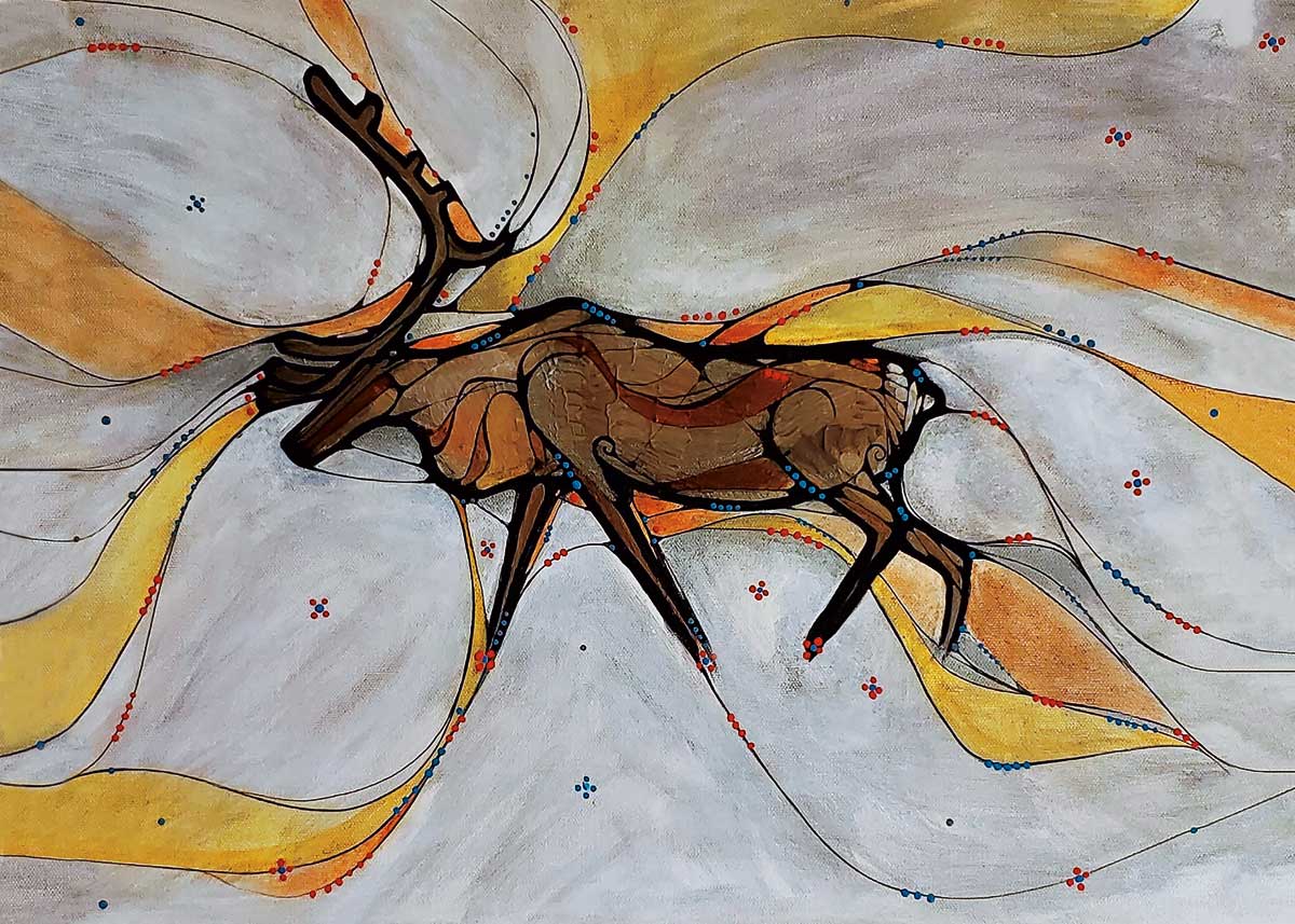 His paintings pay homage to the subsistence lifestyle of his Cree Moshums (Grandfathers and Grandmother’s). Laird’s images are inspired largely by childhood memories on the trap-line and fishing grounds.