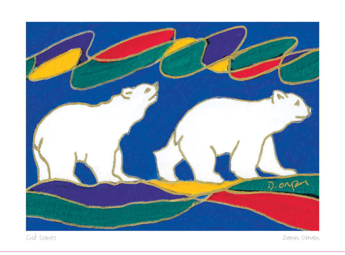 Dawn Oman, a Métis artist born in Yellowknife, Northwest Territories, is a direct descendant of Chief Snuff, Chief of the Yellow Knives, one of the signers of the original Treaty 8 with the Government of Canada. After moving to Vancouver as a teenager, she began seriously applying herself to her art, and in 1995, Dawn moved back to Yellowknife where she opened her own gallery in 1999. She continues to paint and welcome visitors and collectors from across Canada and around the world.