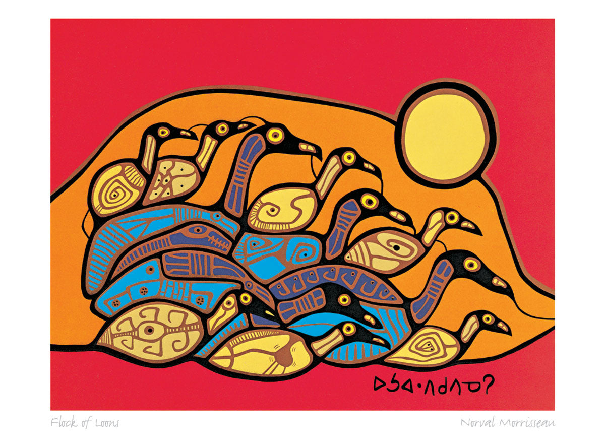 Morrisseau was the recipient of numerous honourary degrees, a membership in the Order of Canada, a membership in the Royal Academy of Arts, the Aboriginal Lifetime Achievement Award and was the first First Nations artist to have a solo exhibit in the National Gallery of Canada which now houses a permanent collection of his art. His work was also exhibited in the Smithsonian National Museum of the American Indian. In recognition of his talents and contributions to the Aboriginal community, he was awarded a Great Eagle Feather and was appointed the Grand Shaman by the Ojibwa.