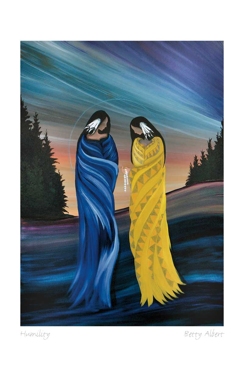 Betty Albert-Cree. Betty Albert was adopted and raised by French Canadian parents in Northern Ontario. She spent time on Vancouver Island where both of her interests in art and spirituality surfaced. During the next twenty years, she worked with pen and ink, and improved her artistic techniques. Circumstances eventually brought her back to her Native American father, discovering her birth right as a Cree. Like many Cree people, dreams are an important part of her life and her work. She discovered that her dream people were faceless and this is evident in some of her work. Her art allows the viewer to experience tradition, action, and a deep spirituality.