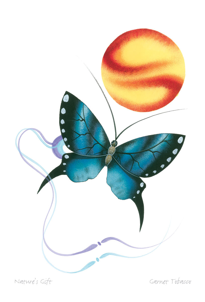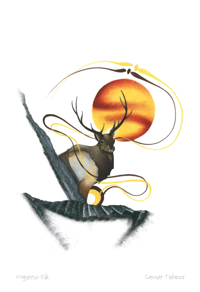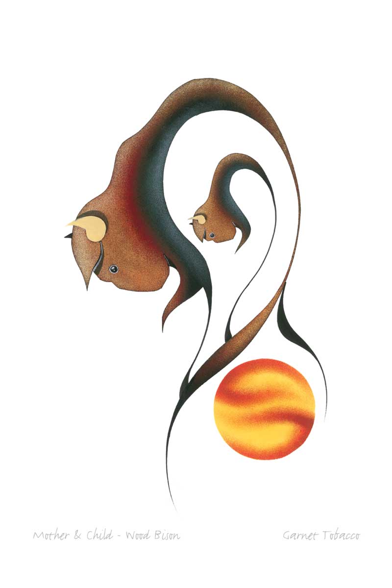 Garnet Tobacco, a Cree artist, was born on February 6th, 1964 in Moose Lake, Manitoba. The Buffalo is his family crest symbol.