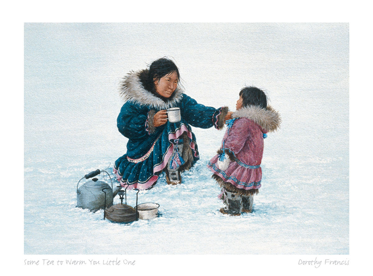 Dorothy Francis was born and raised in Saskatchewan , Canada. A childhood passion for drawing and painting developed into a full time career as an artist, whose work is now in demand throughout the world. She is best known for her portraits of Inuit People, whom she has studied extensively, to ensure that details in dress and artifacts are correct. Her compositions radiate a light-hearted happiness and often feature children.