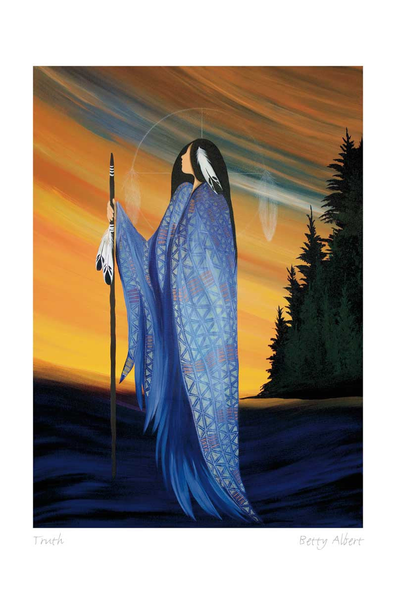 Betty Albert-Cree. Betty Albert was adopted and raised by French Canadian parents in Northern Ontario. She spent time on Vancouver Island where both of her interests in art and spirituality surfaced. During the next twenty years, she worked with pen and ink, and improved her artistic techniques. Circumstances eventually brought her back to her Native American father, discovering her birth right as a Cree. Like many Cree people, dreams are an important part of her life and her work. She discovered that her dream people were faceless and this is evident in some of her work. Her art allows the viewer to experience tradition, action, and a deep spirituality.